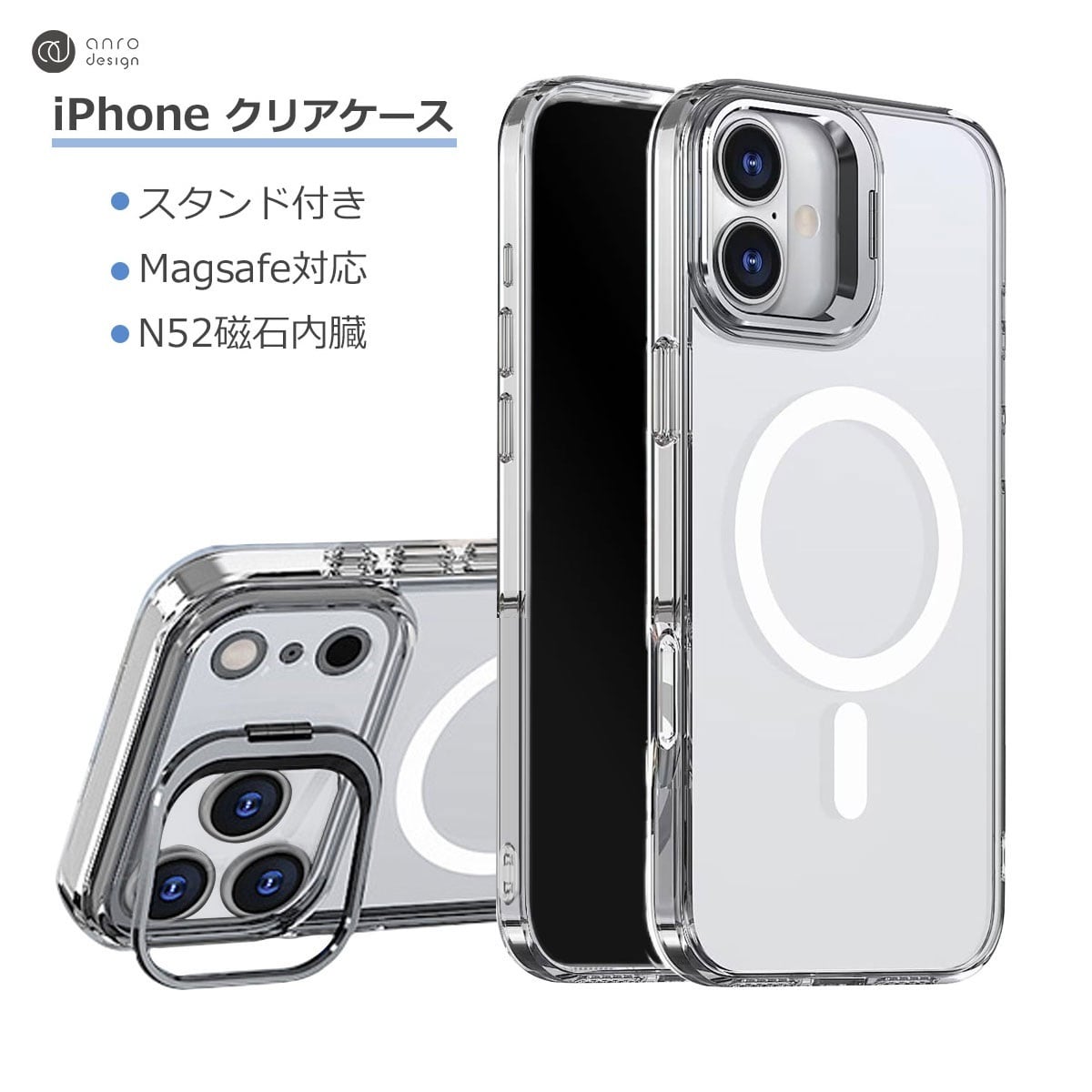 iPhone 17Pro ケース クリア スタンド付き マグセーフ 対応 透明 iPhone16 Magsafe N52磁石 iPhone 15 15Pro クリア 耐衝撃